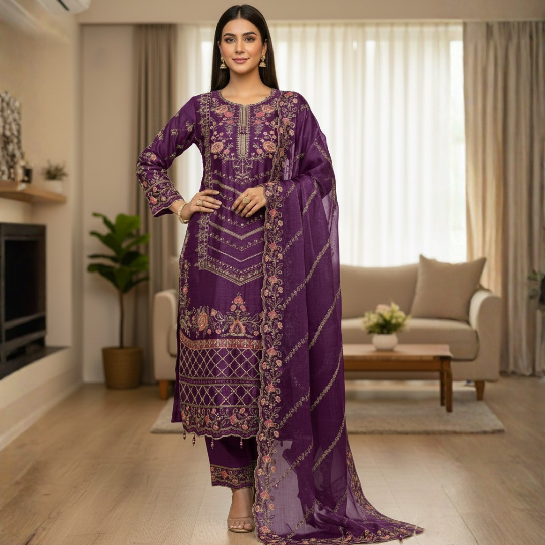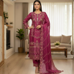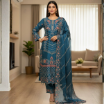 প্রিমিয়াম কোয়ালিটি নীল সফট জিমিচু জর্জেট ৪-পিস